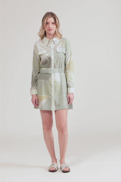 Estilo y comodidad en una sola prenda. Este vestido de manga larga se abrocha con botones, incorpora dos bolsillos en el pecho y se ajusta a la cintura con cinturón, para realzar tu silueta con un toque casual y elegante. Versátil y atemporal, es perfecto para el día a día o para elevar tus looks con un aire desenfadado.